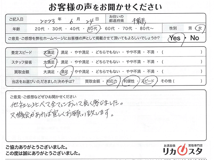 査定スピードや接客等にお喜びいただけたご様子で、大変嬉しく思います!
