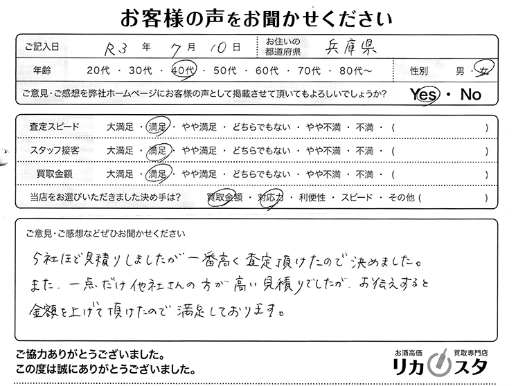 今回のお客様は、兵庫県から宅配買取にてお取引させていただきました。
