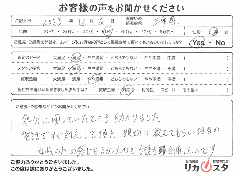 今回は、三重県にお住いのお客様よりお買取りさせていただきました。