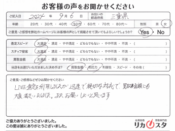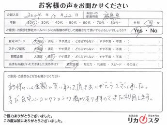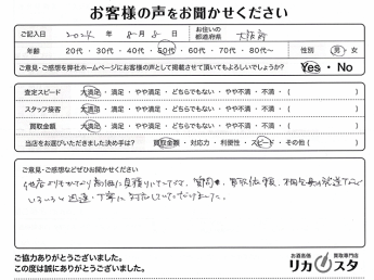 お客様コメント 他店よりも買いとり金額が高く、対応の早さ、 スタッフの方のLINE文章がとてもよかったので、 また機会があれば利用したいです。 […]