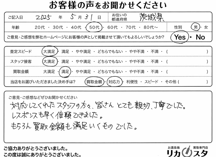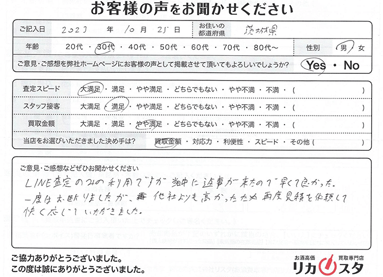 本査定にご納得いただけない場合は、キャンセルも可能です。その際の送料も当店負担でご返送させていただきます。