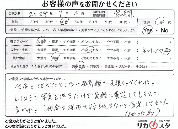 お客様コメント 大量に査定をお願いさせていただきましたが査定スピードも早く、金額も他社より満足するものでした。 LINEでのやりとりでしたが途中での本数変更 […]