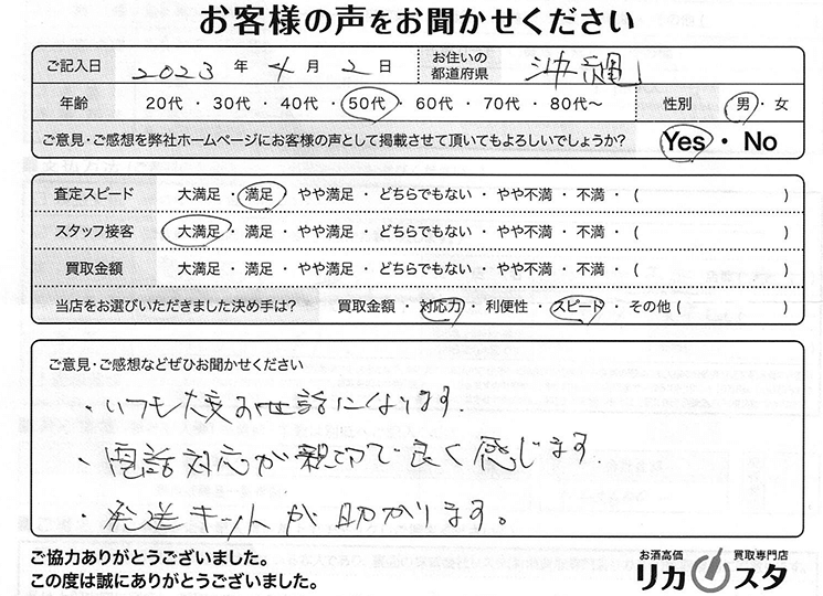 お客様コメント いつも大変お世話になります。 電話対応が親切で良く感じます。 発送キットが助かります。 […]