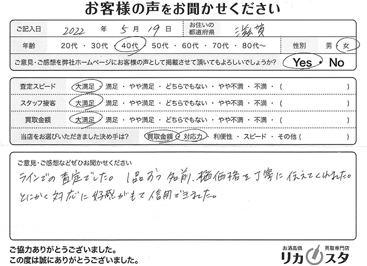 本査定にご納得いただけない場合は、キャンセルも可能です。その際の送料も当店負担でご返送させていただきます。