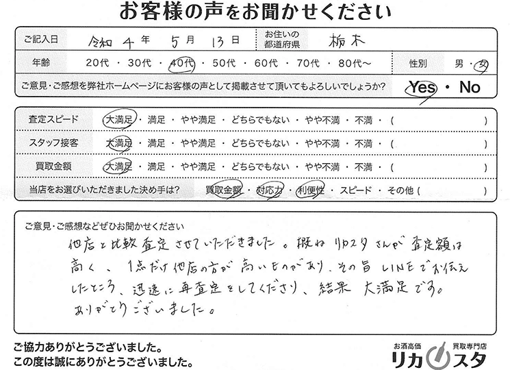 本査定にご納得いただけない場合は、キャンセルも可能です。その際の送料も当店負担でご返送させていただきます。