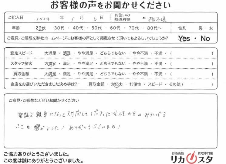 申し訳ございません。当店では20歳未満の方からの買取はお受けできませんのでご了承くださいませ。