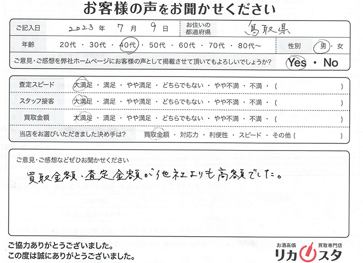 本査定にご納得いただけない場合は、キャンセルも可能です。その際の送料も当店負担でご返送させていただきます。