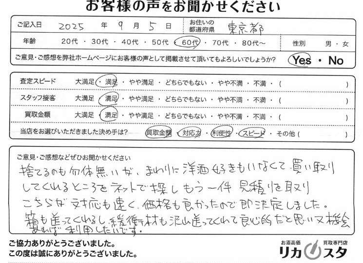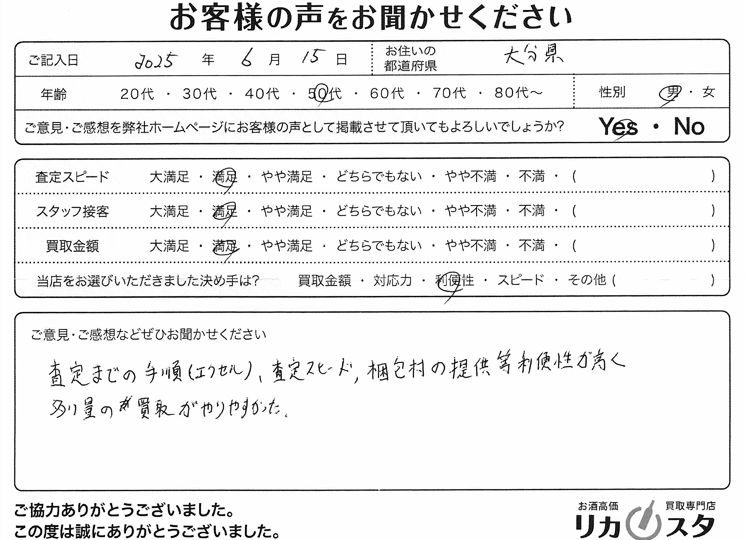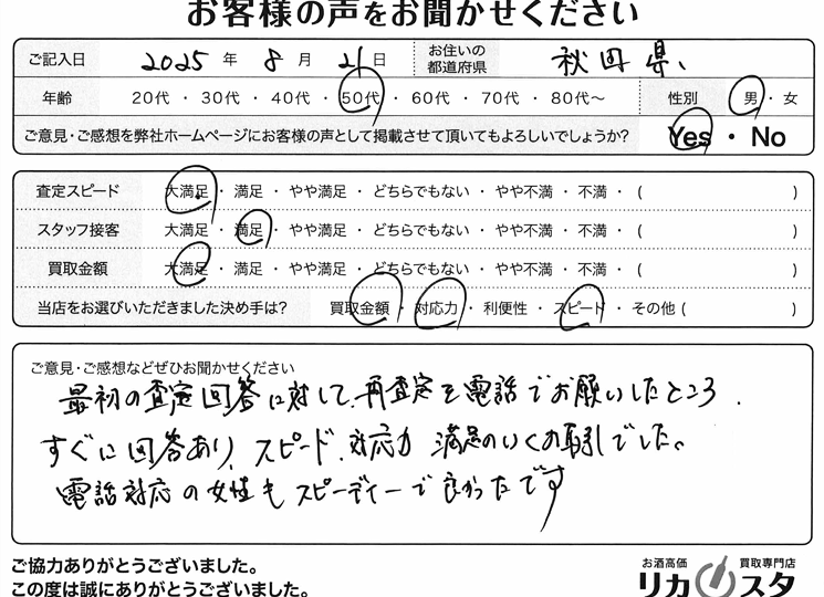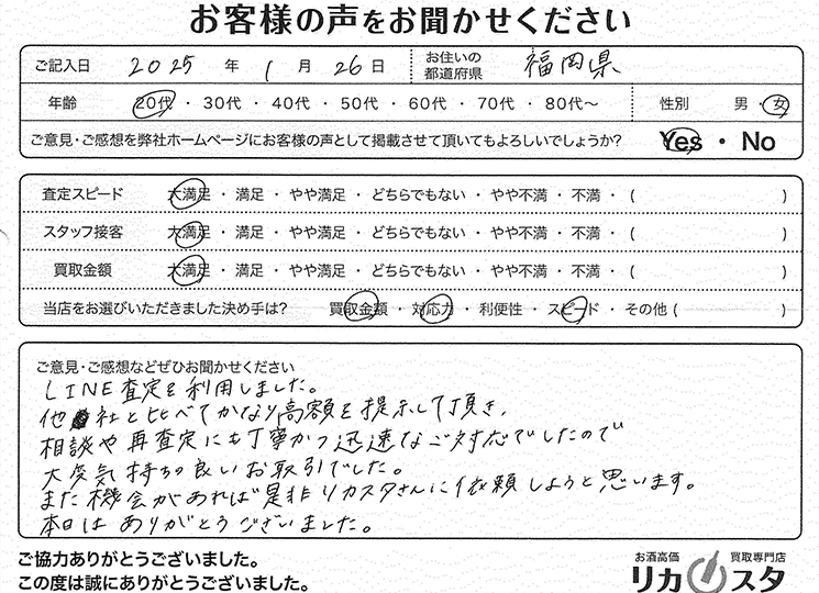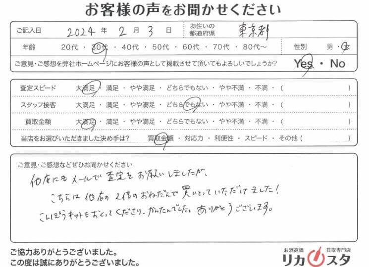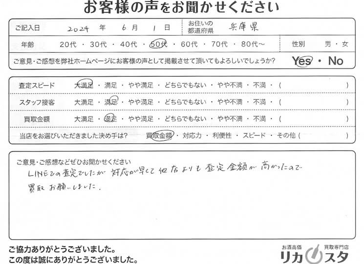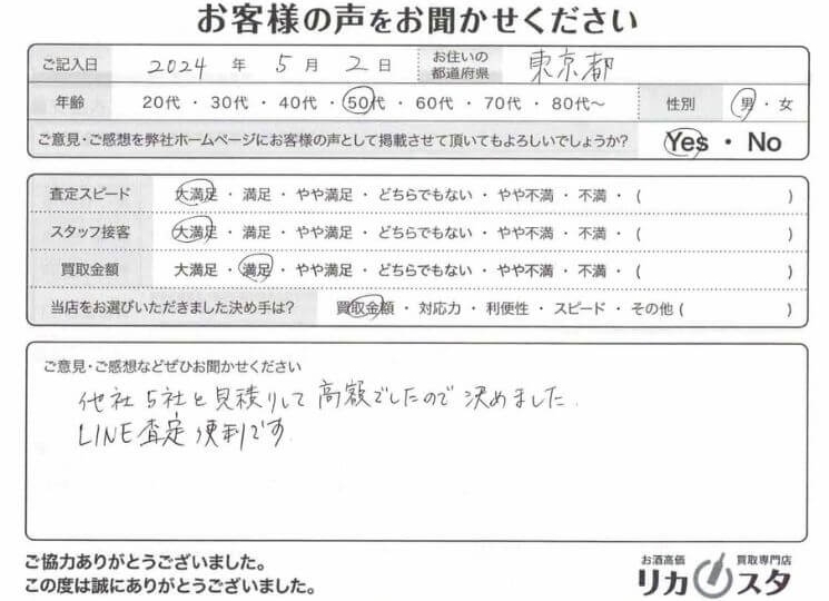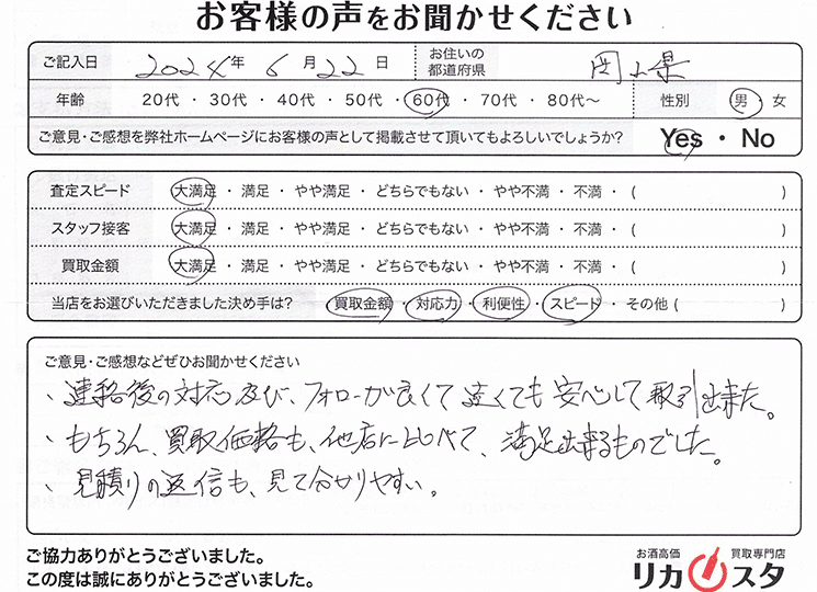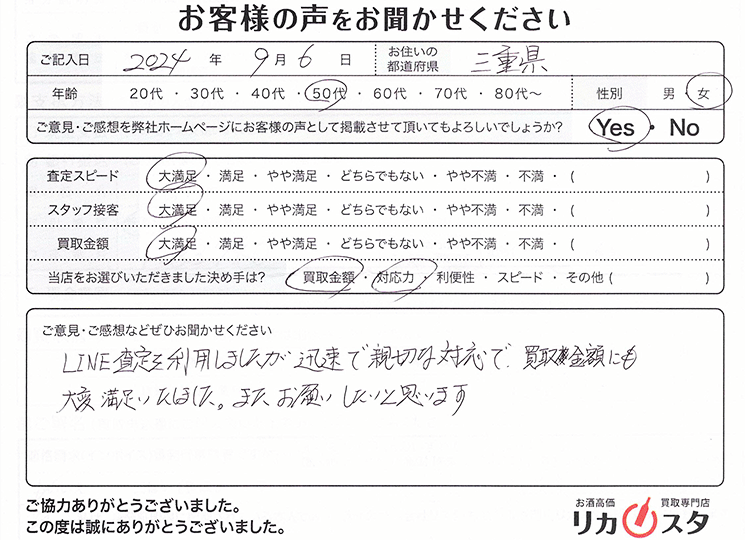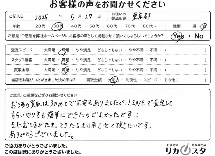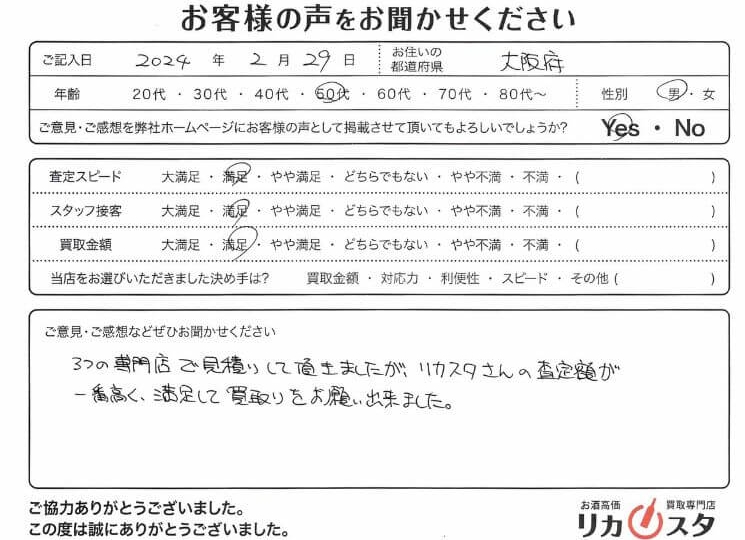 お客様コメント 初めてのお酒の買取依頼で不安でしたが、LINEより簡単に見積りが出せ、尚かつ返信までにも時間がかからず、他会社では「その他~〇 […]