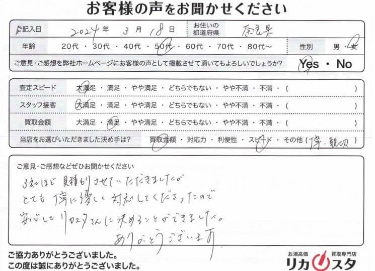 お客様コメント 他社と比べて、買取の金額がとても良い(的確) スタッフ この度 […]