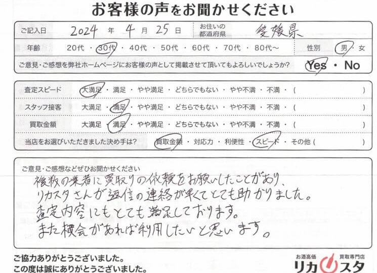 お客様コメント 他の買取店では買取対象外と言われたのでありがたかったです。 また機会があればよろしくお願いします。 […]