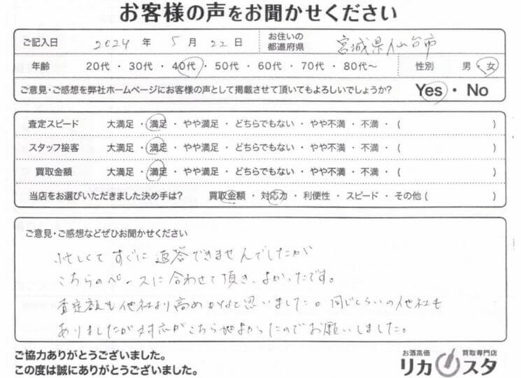 お客様コメント どのお店より高額でスピーディーに対応していただいて安心して売買できました。 […]