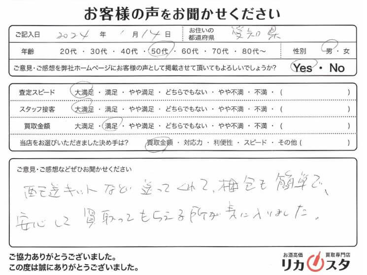今回は、愛知県にお住いのお客様よりお買取りさせていただきました。