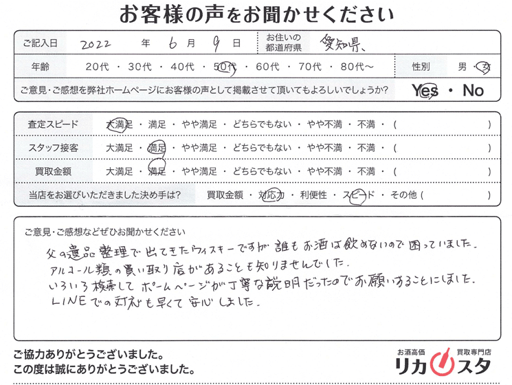 「LINEでの対応も早くて安心しました」とのお声をお聞きでき、こちらも安堵いたしました。