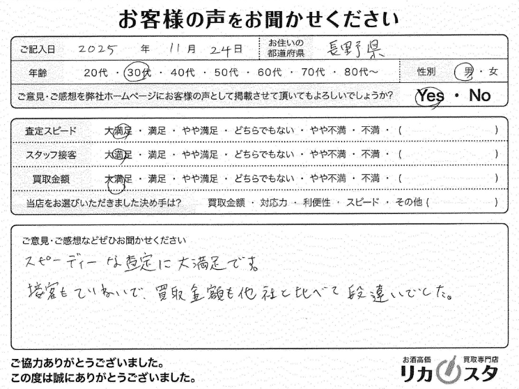接客も丁寧で、買取金額も他社と比べて段違いでした。