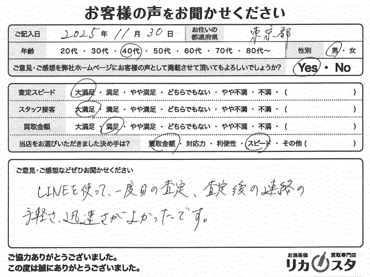 査定の手軽さにご満足いただけて大変光栄でございます。