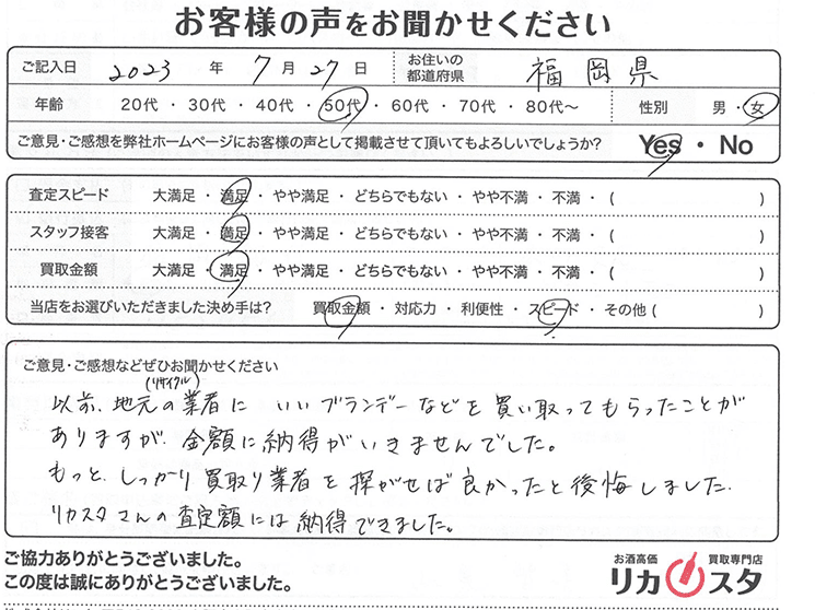 今回は、福岡県にお住いのお客様よりお買取りさせていただきました。