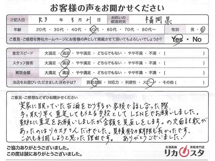 LINEですと、売りたいお酒の写真をパパっと送るだけなので、手っ取り早いですよね。