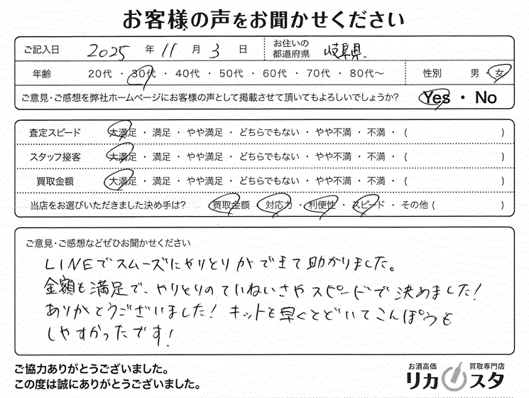 買取金額、対応力にご満足いただけ大変嬉しく思います!