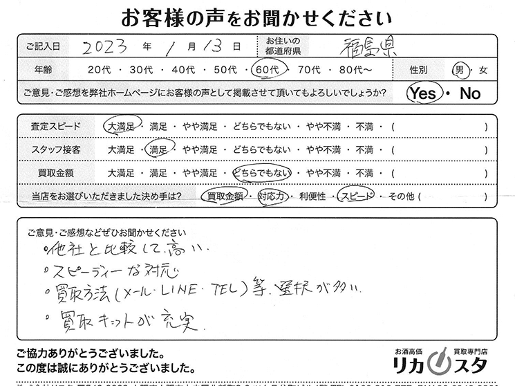 今回は、福島県にお住いのお客様よりお買取りさせていただきました。