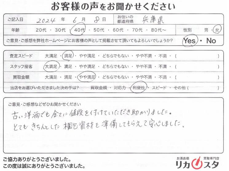 古い洋酒でも全てに値段を付けていただき助かりました。