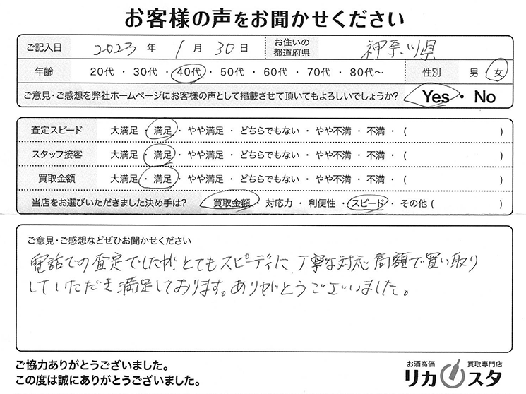 高額で買い取りしていただき満足しております。