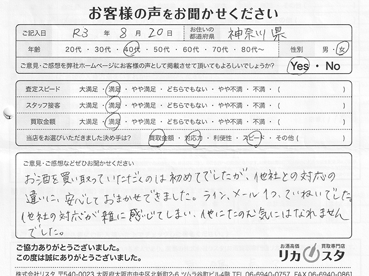 この度は当店リカスタをご利用いただき誠にありがとうございます。