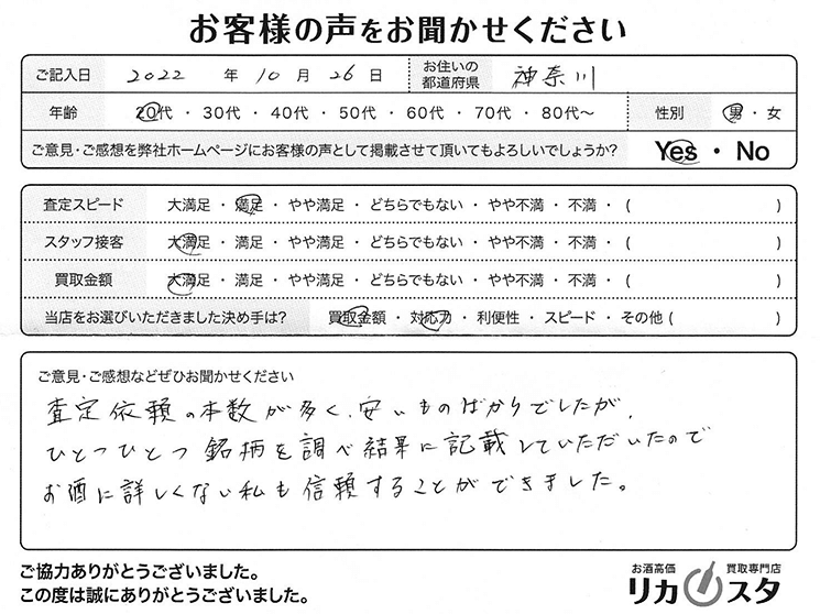 今回は、神奈川県にお住いのお客様よりお買取りさせていただきました。