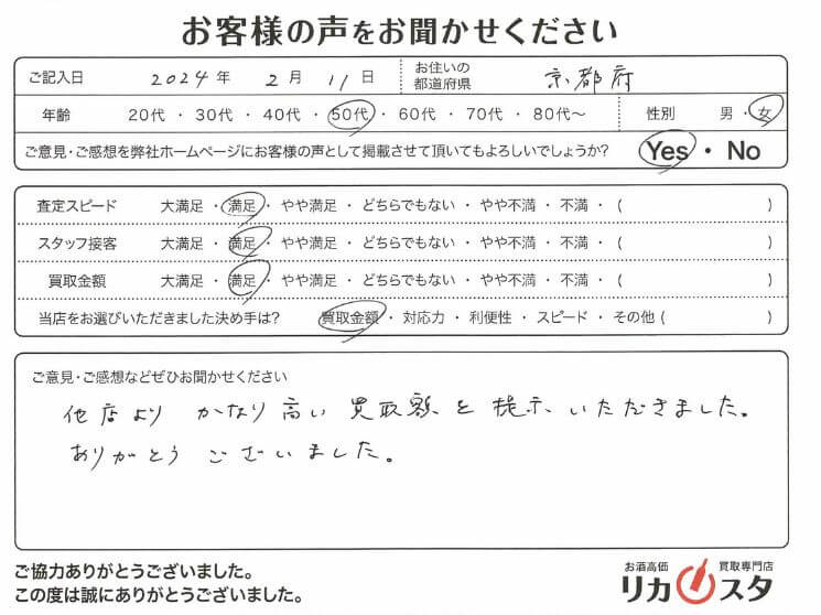 当店の買取額にご満足いただけたご様子で大変嬉しく思います!