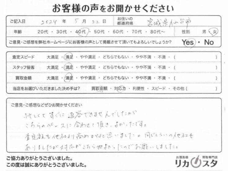今回は、宮城県にお住いのお客様よりお買取りさせていただきました。