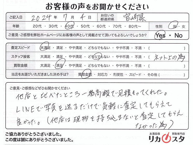 (他店は現物を持ち込まないと査定してもらえなかった為)