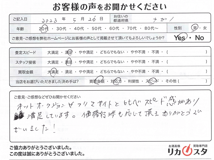 ネットオークションやフリマサイトと比べスピード感があり満足しています。