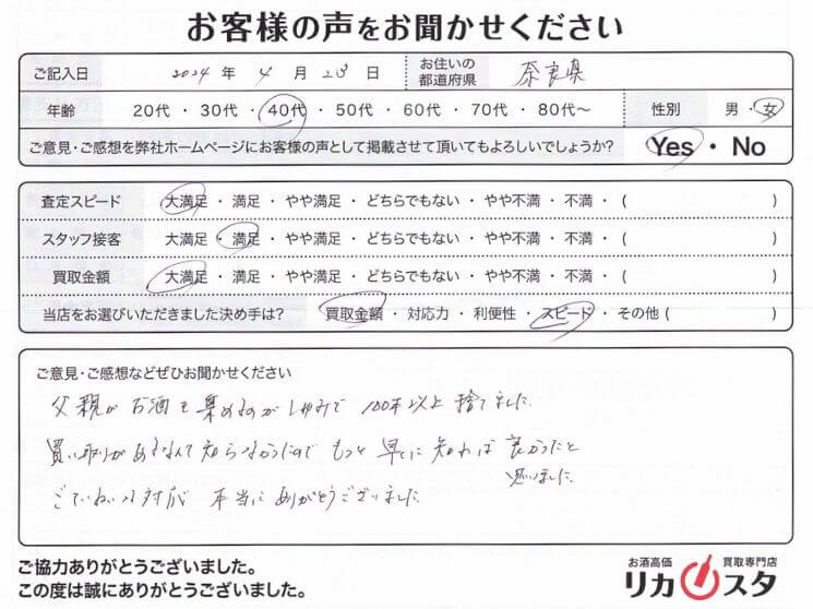 今回は、奈良県にお住まいのお客様よりお買取りさせていただきました。