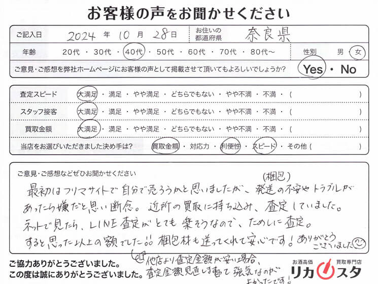 LINE査定の気軽さや買取金額にご満足いただけ大変嬉しく思います!