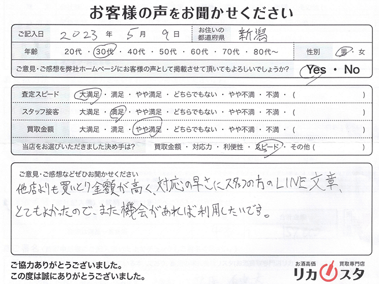 LINEでのスタッフの対応などにご満足頂けたご様子で、大変嬉しく思います!