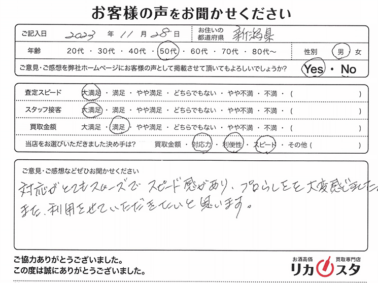 当店の対応へのお褒めのお言葉、大変嬉しく励みになります!