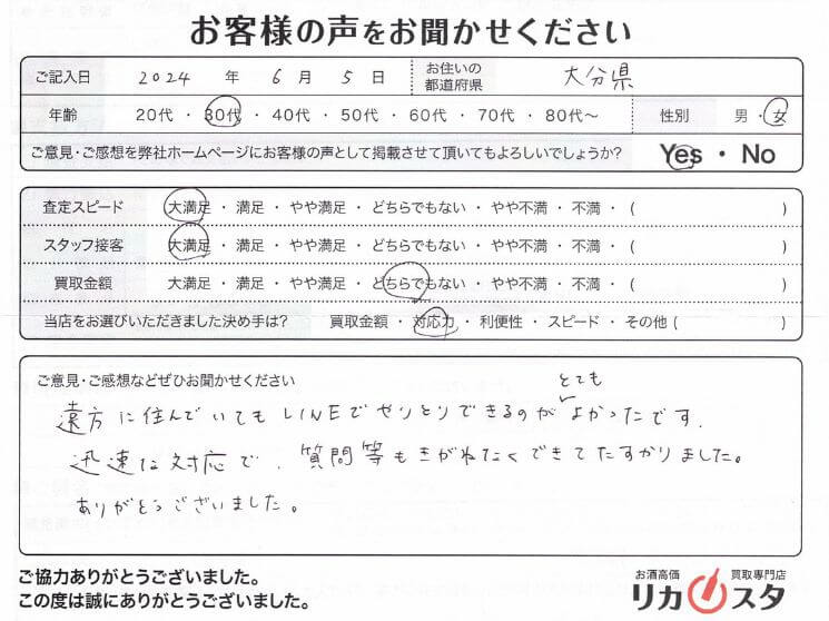 今回は、大分県にお住いのお客様よりお買取りさせていただきました。
