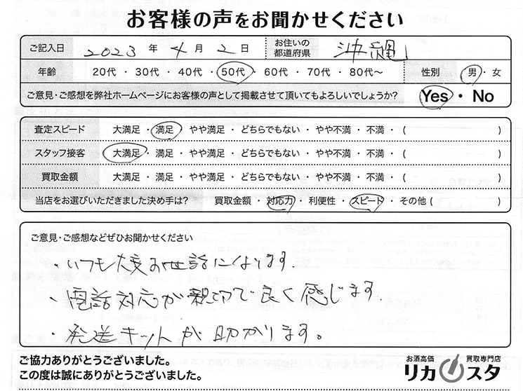 今回は、沖縄県にお住いのお客様よりお買取りさせていただきました。