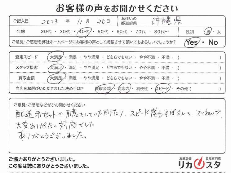 今回は、沖縄県にお住いのお客様よりお買取りさせていただきました。
