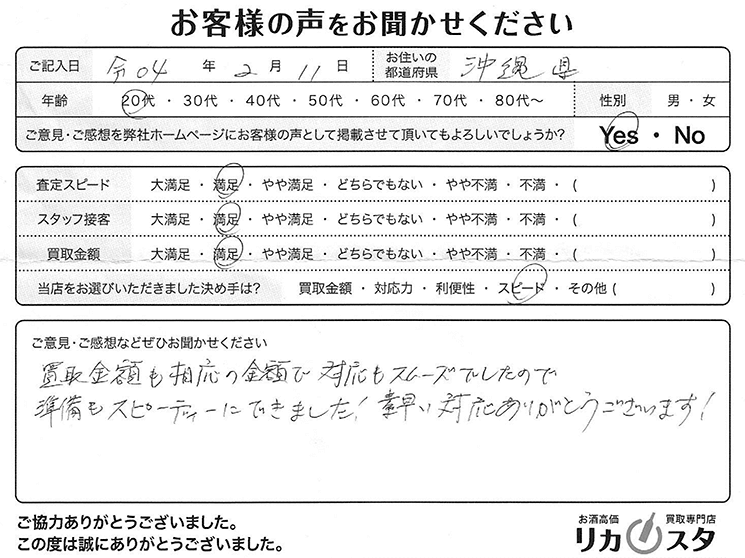 買取金額も相応の金額で対応もスムーズでしたので、準備もスピーディーにできました!素早い対応ありがとうございます!