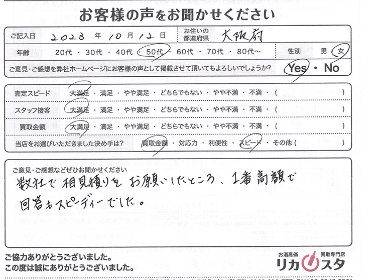 当店の査定スピードと査定金額が1番だったとのお言葉、大変嬉しいです!