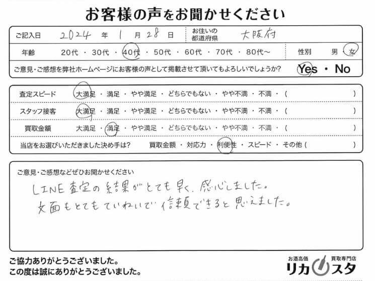 当店の査定スピードと対応に信頼できるとのお言葉、大変嬉しく思います!