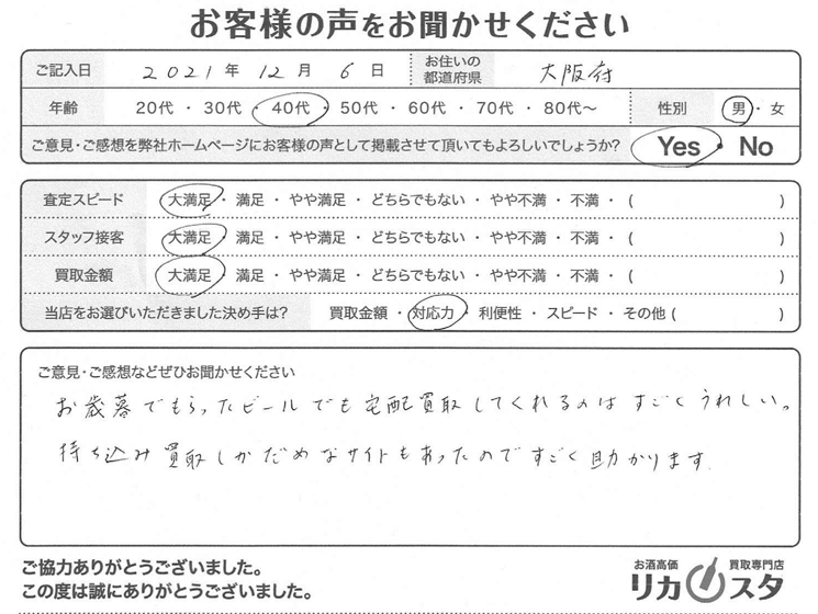 お歳暮でもらったビールでも宅配買取してくれるのはすごくうれしい。