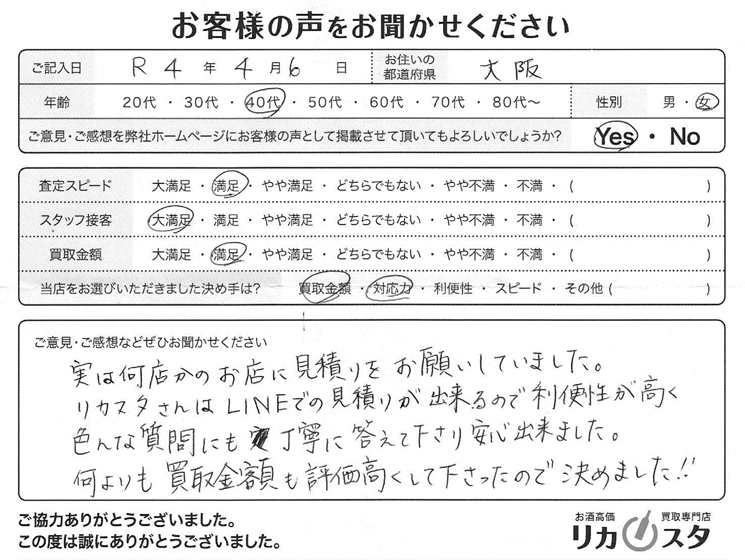 何よりも買取金額も評価高くしてくださったので決めました!!