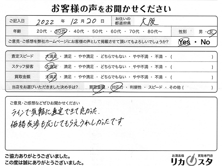 この度は当店をご利用くださり、誠にありがとうございます。