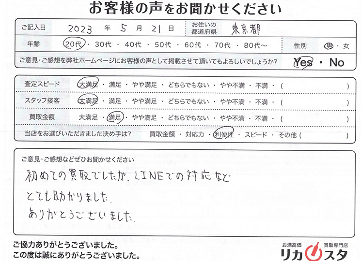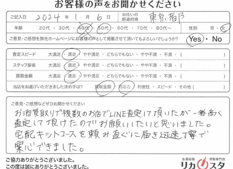 お客様コメント お酒買取りで複数のお店でLINE査定して頂いたが一番高く査定して頂けたのでお願いしたいと思いました。 宅配キットコースを頼みすぐに届き、迅速 […]