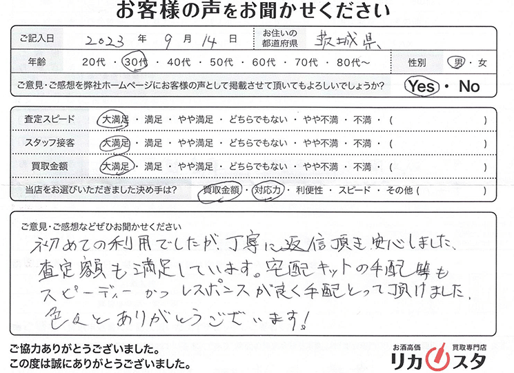 お客様コメント 初めての利用でしたが、丁寧な対応していただきありがとうございました。 査定額も他店よりも高価だったので嬉しかったです。 機会があればまた利用 […]