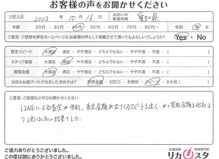 お客様コメント LINE査定がスピーディーで、他の買取業者より金額が高かったのがうれしいです。 […]