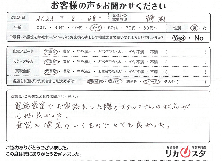 お客様コメント いつもとてもていねいに対応していただいてます。 他の買取よりも断然高額で査定していただき、とても安心します。 ありがとうござい […]