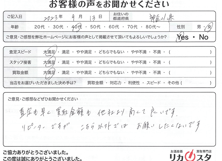 お客様コメント 酒の買取は初めてで不安がありましたが、迅速な対応と適正な査定で 安心してリカスタさんに決める事にしました。 […]