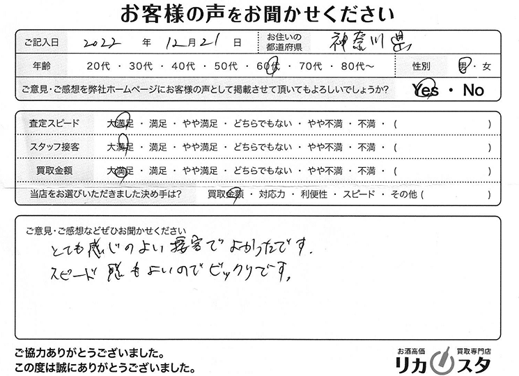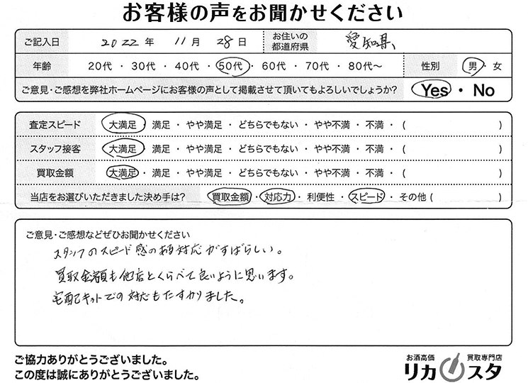お客様コメント スタッフのスピード感のある対応がすばらしい。 買取金額も他店と比べて良いように思います。 宅配キットでの対応も助かりました。 […]